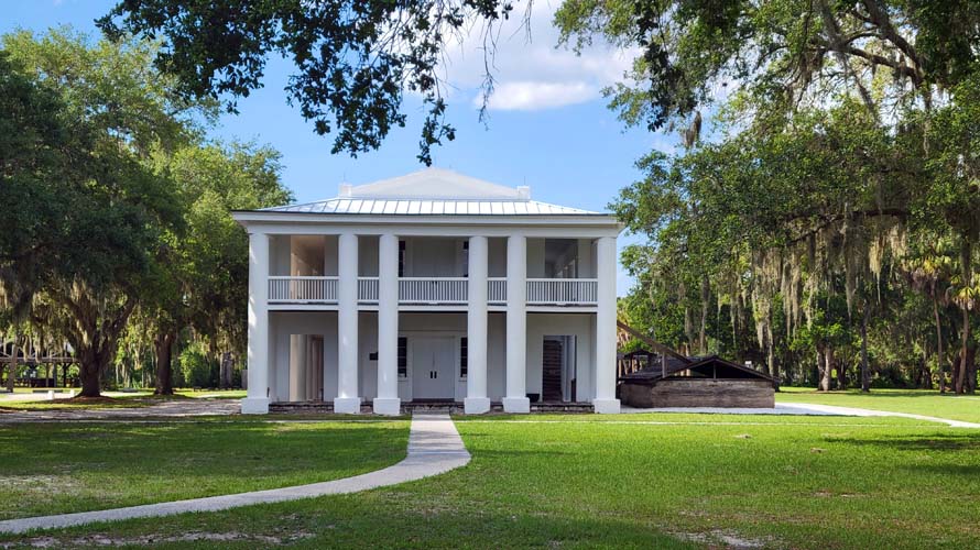 We did not spend every day at Disney parks, but instead broke up our time with a day trip to the Tampa, St. Petersburg, and Clearwater area on the Gulf Coast. We toured the Florida Botanical Gardens, hiked the trail at De Soto National Memorial, and visited Gamble Plantation Historic State Park (the only surviving plantation house in South Florida). We also drove the Sunshine Skyway Bridge across Tampa Bay and spent part of the day at John’s Pass where we played on the beach, watched dolphins and a manatee, had a nice meal at the Friendly Fisherman restaurant, and Elizabeth was able to walk in the ocean for the first time.