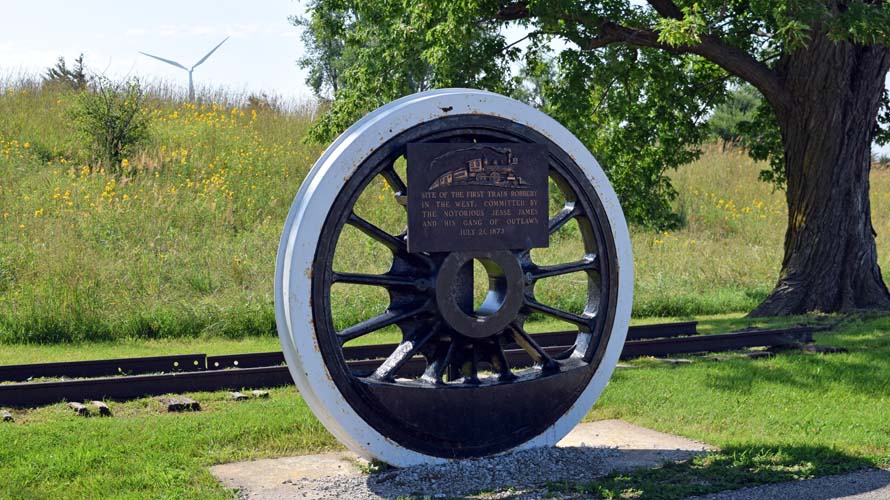 We drove east across Iowa, stopping at the Jesse James Historical Site in Adair. This site marks the location of the world's first robbery of a moving train. As the story goes, Jesse James believed there to be a shipment of gold on a train passing by Adair. He and his gang cut the rails and when the train came along, they pulled the rail out of place and the engine plunged into the ditch. The engineer and fireman were killed, and several passengers were injured. When they opened the safe, there was no gold shipment, as it had been delayed. Jesse and his gang robbed the passengers and fled to Missouri, where the governor offered a $10,000 reward for Jesse James, dead or alive. A few years later one of the new members of the James gang was tempted by the reward and shot and killed Jesse James.