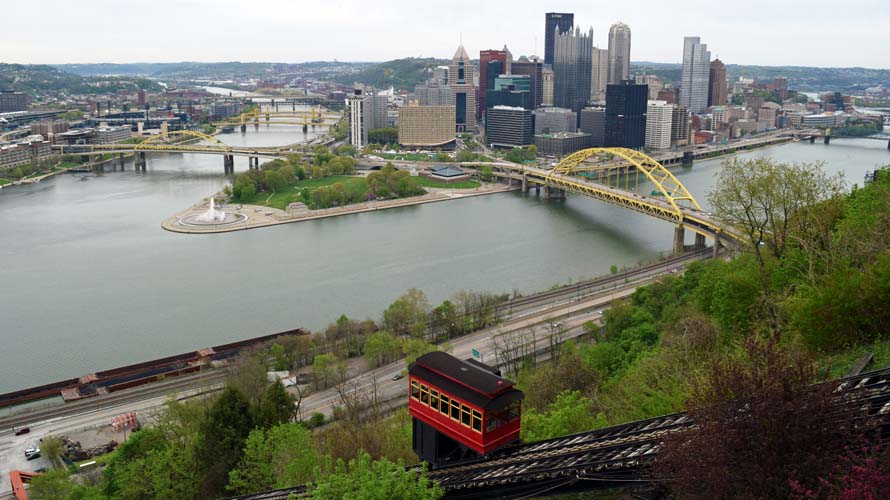We drove to Pittsburgh where we rode the Duquesne and the Monongahela incline railroads from Station Square to the top of Grandview Avenue. At the top, we had a great view of downtown as well as the three rivers: Allegheny, Monongahela, and Ohio.