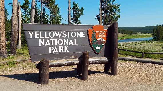 The first national park in the world. Contains vast geothermal areas, hot springs, geysers, and four mountain ranges. The Grand Canyon of the Yellowstone River has numerous waterfalls.