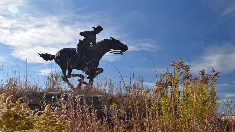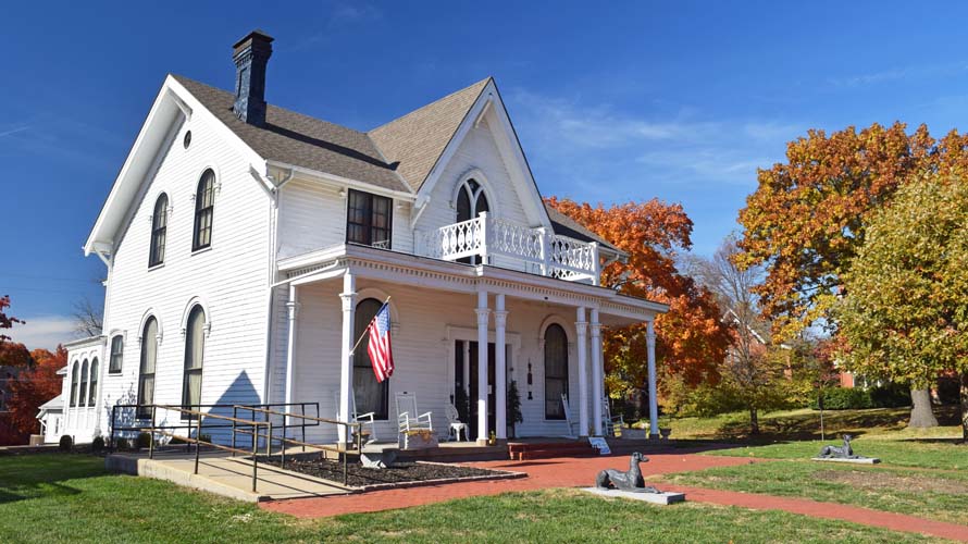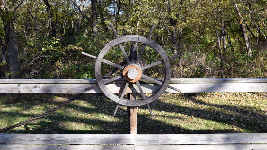 Benjamin and Tiffany spent a day in November driving across northeastern Kansas. Along the way, they stopped in Marysville to see the historic trails park, which had a replica of the rope ferry used by the pioneers on the historic trails to cross the Big Blue River. They also saw the Pony Express Plaza in town, with its statue, murals, and painted squirrels (Marysville is known as the City of Black Squirrels). After a nice BBQ lunch at Bite Me, they drove east to Atchison where they stopped to visit the birthplace of Amelia Earhart along the Missouri River.