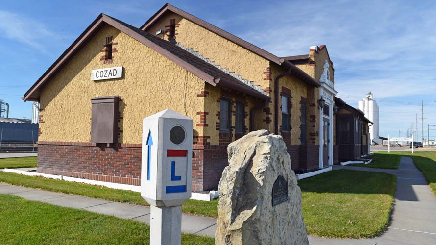After seeing more of the original brick sections of the highway in Lexington, we then stopped in Cozad to see their restored railroad depot. Cozad is also the location of the 100th Meridian.