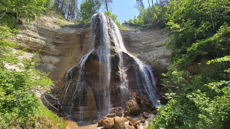 The next day we drove east to the town of Valentine, which is the headquarters for the Niobrara National Scenic River. After a visit to the visitor center and completing the Junior Ranger program, we drove a few miles out of town to Fort Niobrara National Wildlife Refuge. In the refuge, we hiked the short trail to view the 45-foot Fort Falls waterfall and took in the view from several overlooks above the Niobrara River valley. Just a few miles east of the refuge, on the Outlaw Trail Scenic Byway, we made a stop to visit Smith Falls State Park. At 70 feet, Smith Falls is the highest waterfall in Nebraska, and we all enjoyed hiking the trail to view these impressive falls.